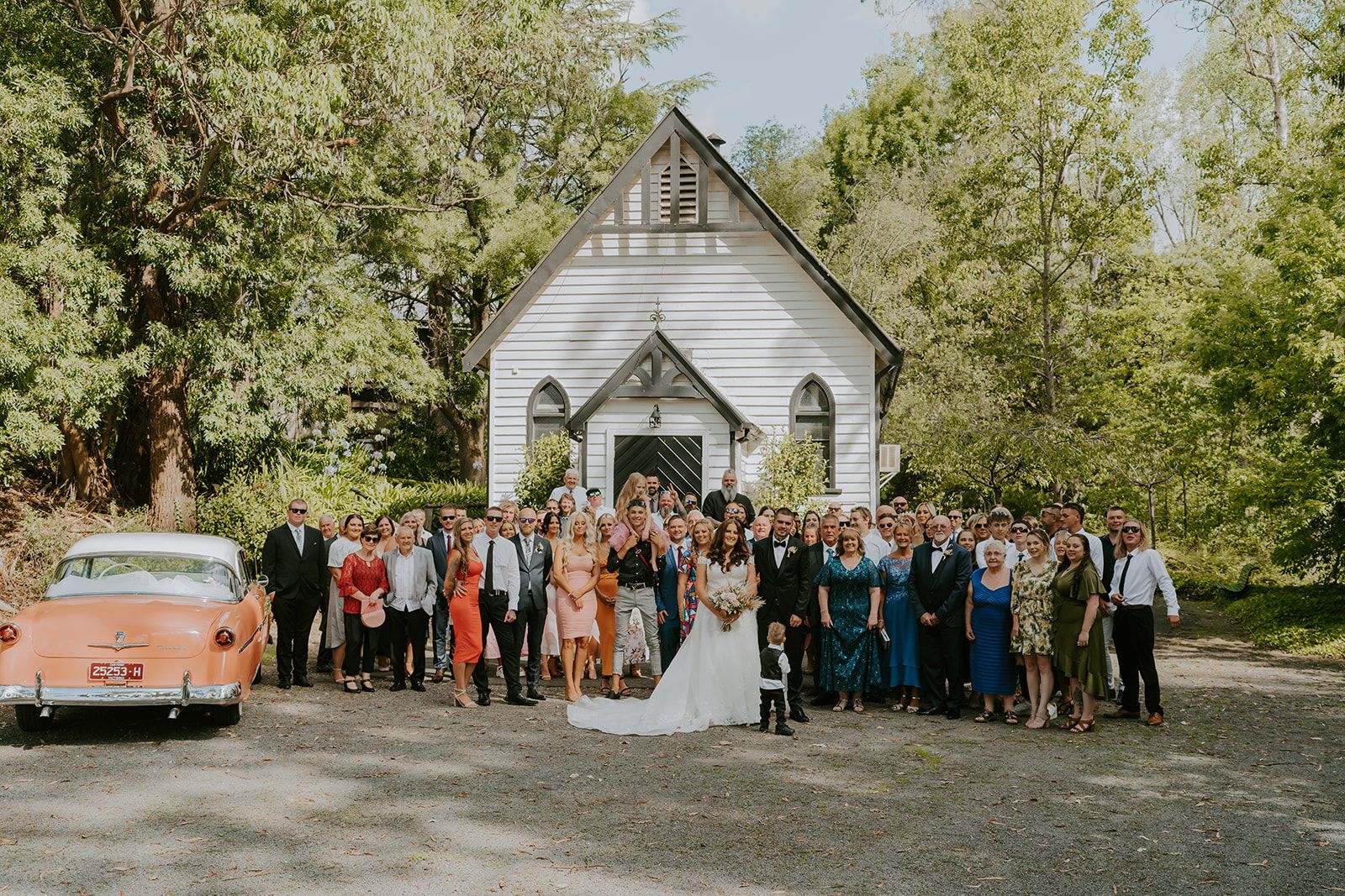 After World War II, the Log Cabin opened as a restaurant named “Chateau Wyuna,” with the name “Wyuna” meaning “on running waters” in Aboriginal language, honoring the creek. Over time, the original buildings were blended to form the charming reception centre we know today. In 1985, a classic weatherboard church from Montrose was added, originally built in 1909, and relocated to the site.