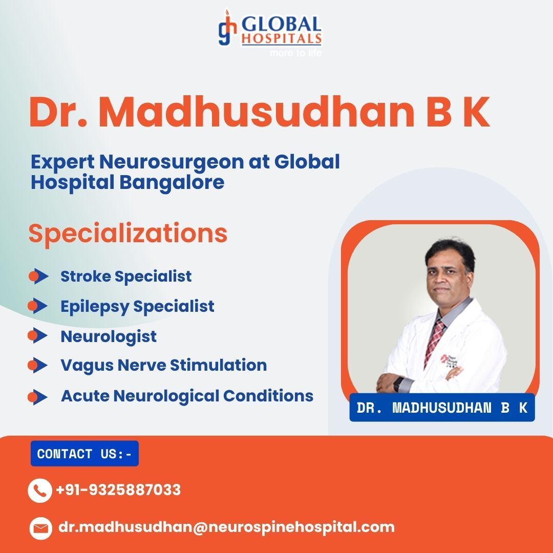 Dr. Madhusudhan BK is a highly respected neurosurgeon known for delivering exceptional care in the field of brain and spine surgery. Practicing at Global Hospital, Bengaluru, Dr. Madhusudhan B K Neurosurgeon Global Hospital Bangalore is widely recognized for his expertise and dedication. With years of clinical excellence, Dr. Madhusudhan BK India has earned a reputation as the Best Neurologist Global Hospital Bengaluru. His advanced surgical skills and compassionate approach make him a trusted name in neurology. Recognized nationally, Dr. Madhusudhan B K Top Neurologist in India continues to transform lives through innovative treatments and patient-centered neuro care.