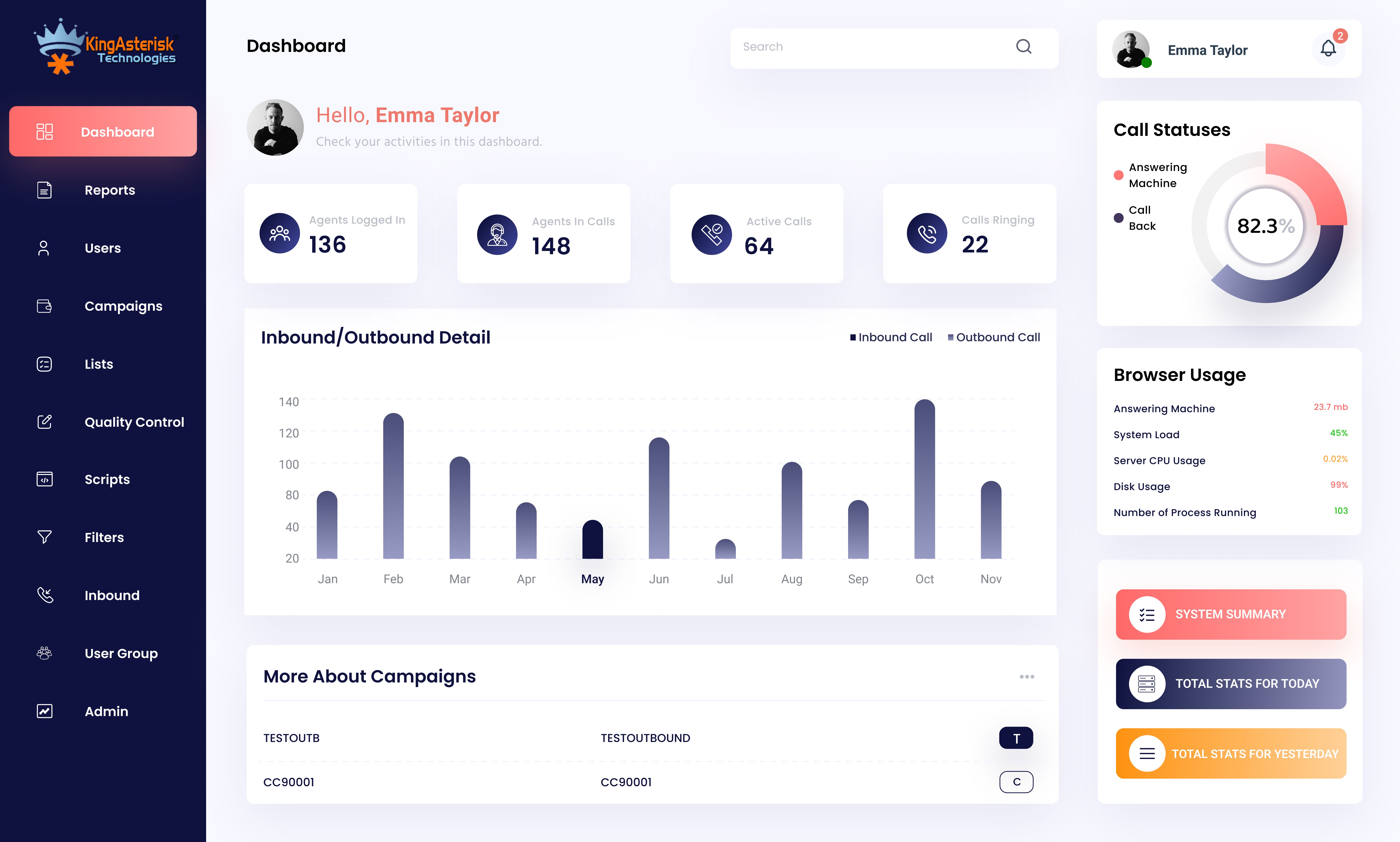KingAsterisk Technologies is a leading force, with a clear goal of boosting communication and operational performance. When it comes to cutting-edge call center solutions, We specialize in a comprehensive suite of solutions, including predictive dialers, Browser-Based Mobile Dialer, PBX systems, and advanced IVR, alongside CRM integration and cloud-based deployments.