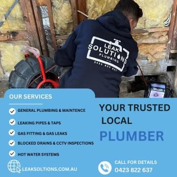 Leak Solutions Plumbing is a fully licensed Plumbing company offering professionalism, fantastic workmanship and prompt service. We specialize in a variety of Plumbing services including; General maintenance, Toilet installation, Leaking pipe and taps, Gas fitting and Gas leak inspections, Blocked drains using CCTV diagnostics and the appropriate hydro jetting equipment, Repair or replace Hot water services and Home renovations such as bathroom, laundry and kitchen.