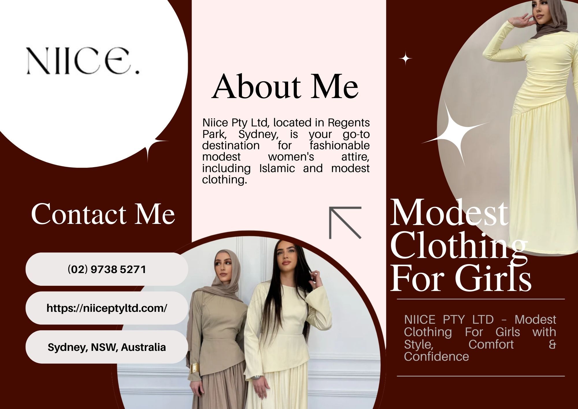 NIICE PTY LTD offers a premium selection of Islamic and modest clothing for women across Sydney, NSW. Serving Granville, Auburn, Bankstown, Greenacre, Guildford, and nearby suburbs, we provide high-quality, elegant, and comfortable apparel. If you’re searching for “Islamic clothing near me” or “modest clothing near me,” NIICE PTY LTD is your trusted destination.