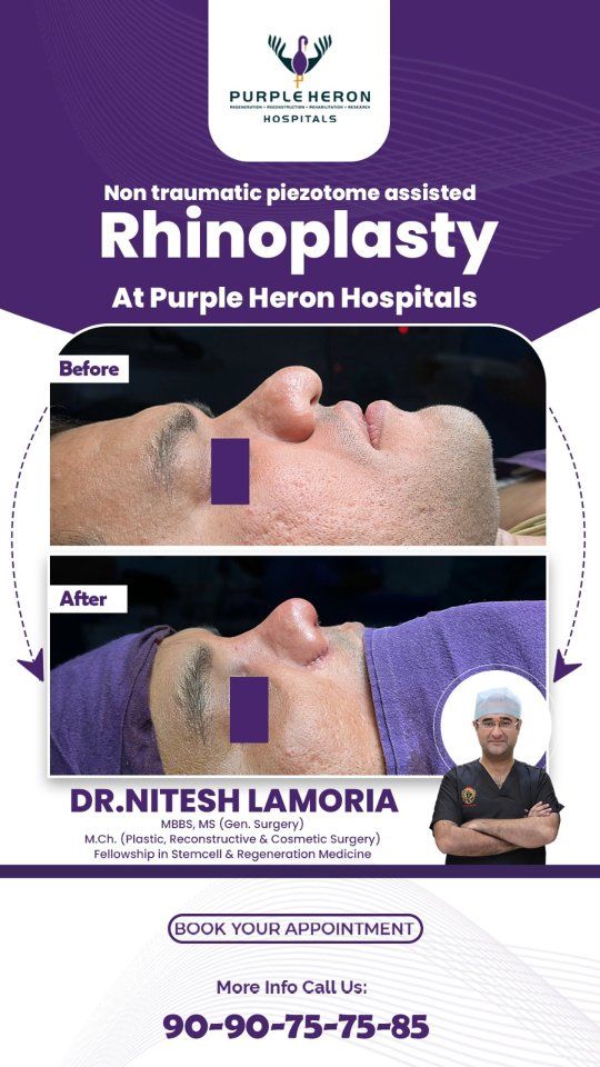Dr. Nitesh Lamoria is considered a top rhinoplasty surgeon in Jaipur, offering expert nose reshaping procedures that balance aesthetic goals with functional breathing improvement. With advanced surgical skills and an artistic approach, he delivers natural-looking, harmonious results tailored to each patient’s facial features. At Purple Heron Hospital, patients benefit from thorough consultations, personalized treatment plans, and compassionate post-operative care to ensure a smooth recovery and enhanced confidence.